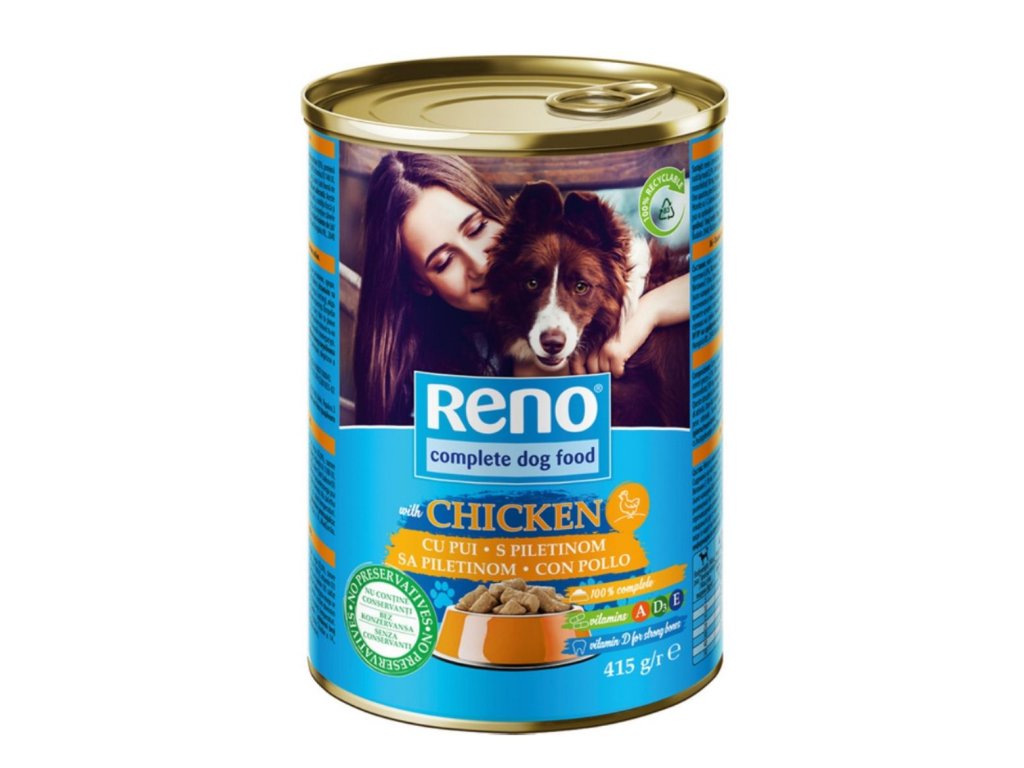 Mäsová konzerva pre psov RENO kúsky DOG hydina v omáčke 415g